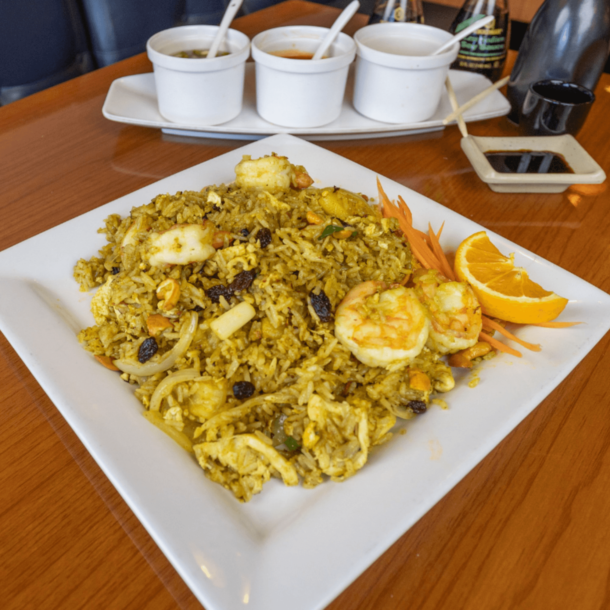 Our menu features timeless Thai favorites, rich bowls of pho, and fresh sushi. From bold curries and stir-fries to refreshing salads, noodle dishes, and handcrafted rolls, every plate reflects the heart of Asian cooking. Pair your meal with a cold beer, a glass of wine, or one of our carefully selected spirits for the perfect finishing touch.